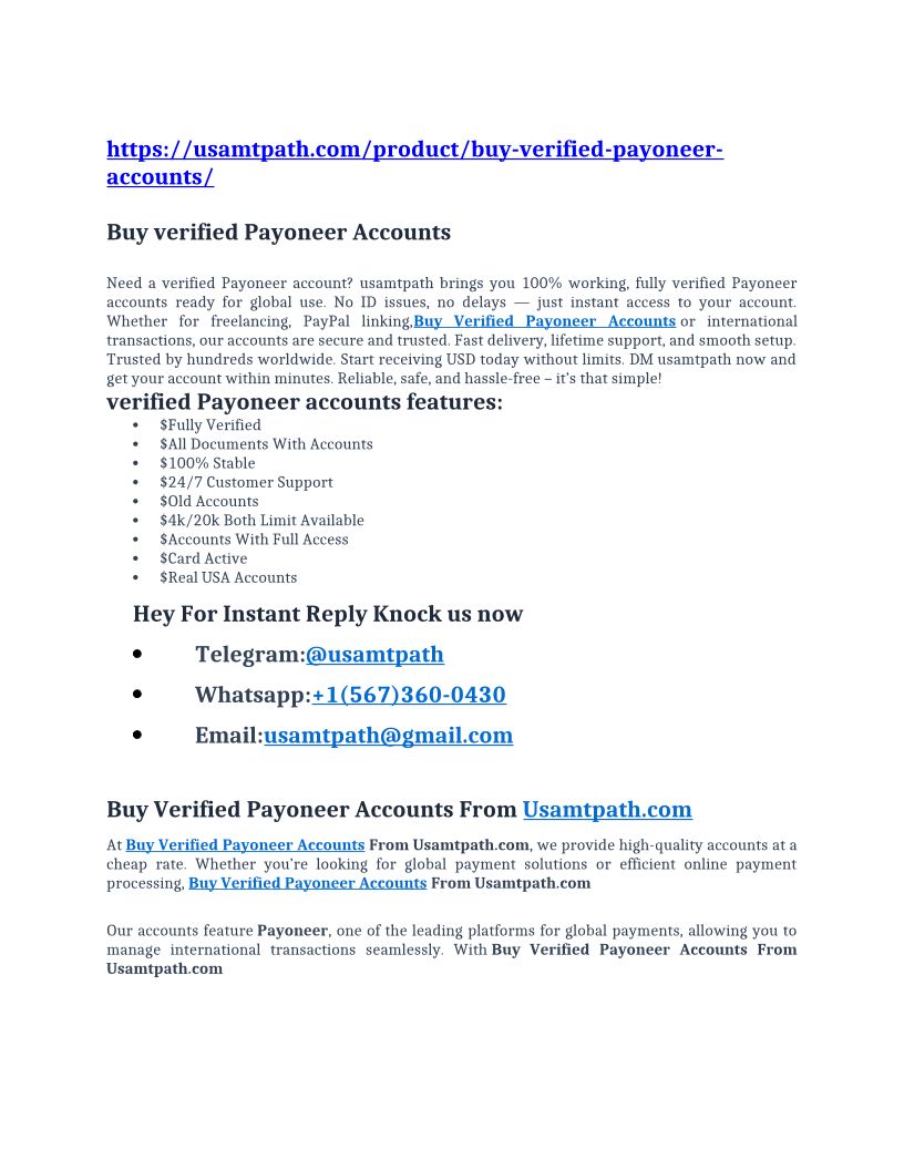 Best Place To Buy Verified Payoneer Account In USA