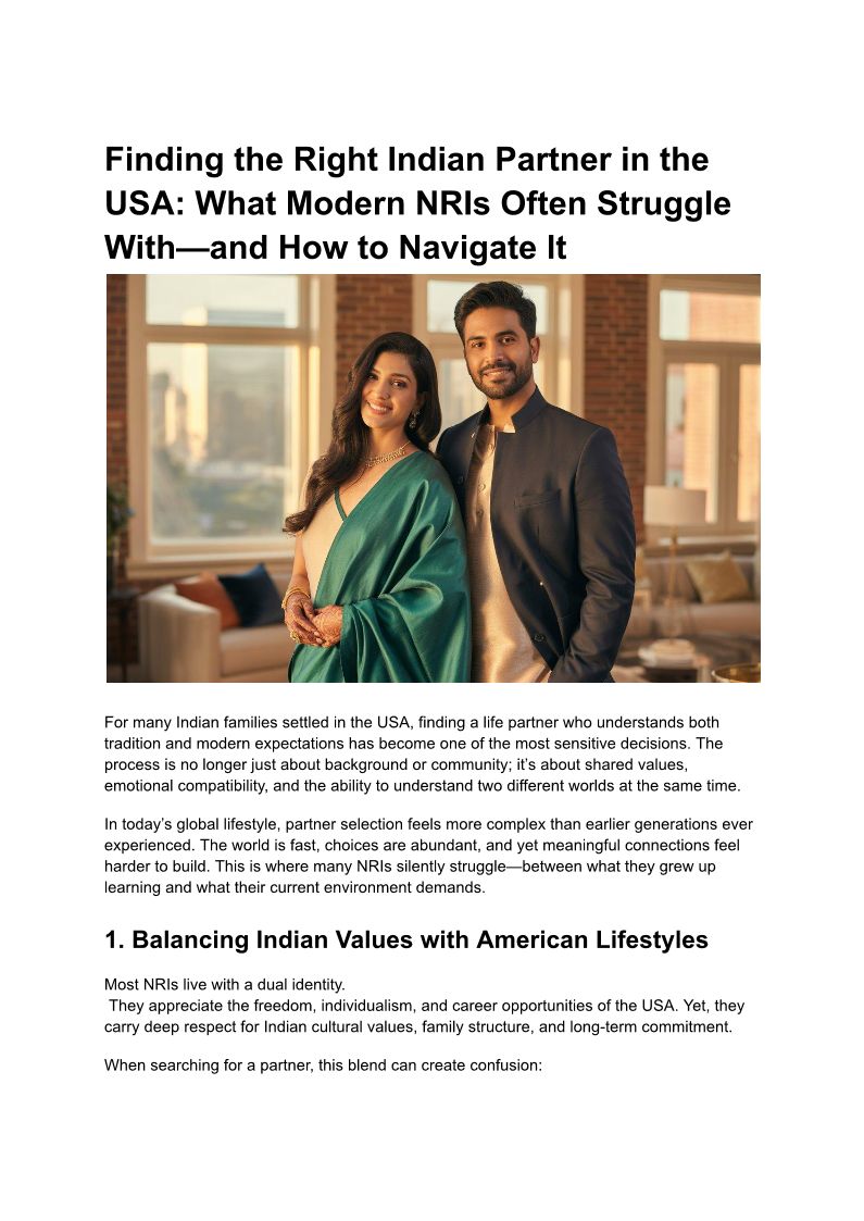 How NRIs Can Find a Compatible Indian Partner in the USA with Confidence