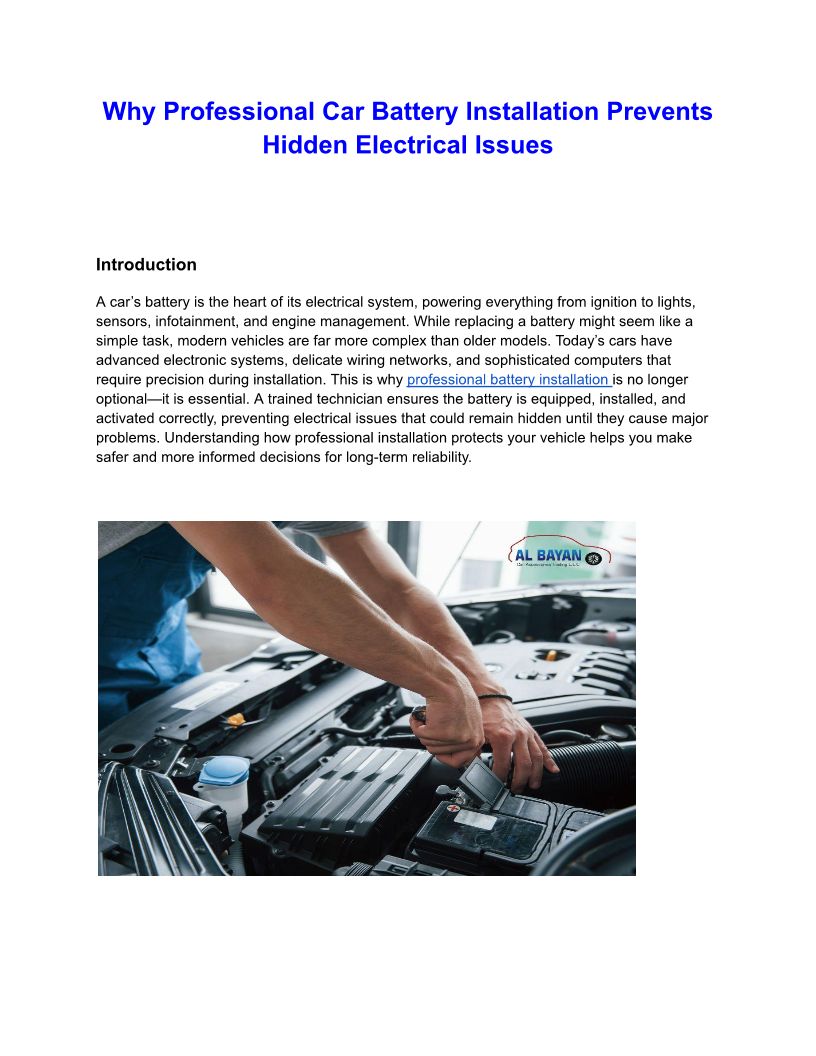 Why Professional Car Battery Installation Prevents Hidden Electrical Issues