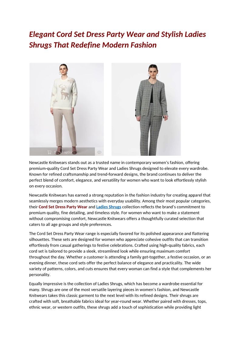 Elegant Cord Set Dress Party Wear and Stylish Ladies Shrugs That Redefine Modern Fashion