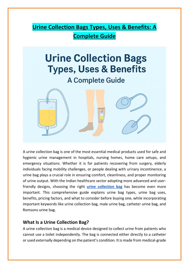 Urine Collection Bags Types, Uses & Benefits