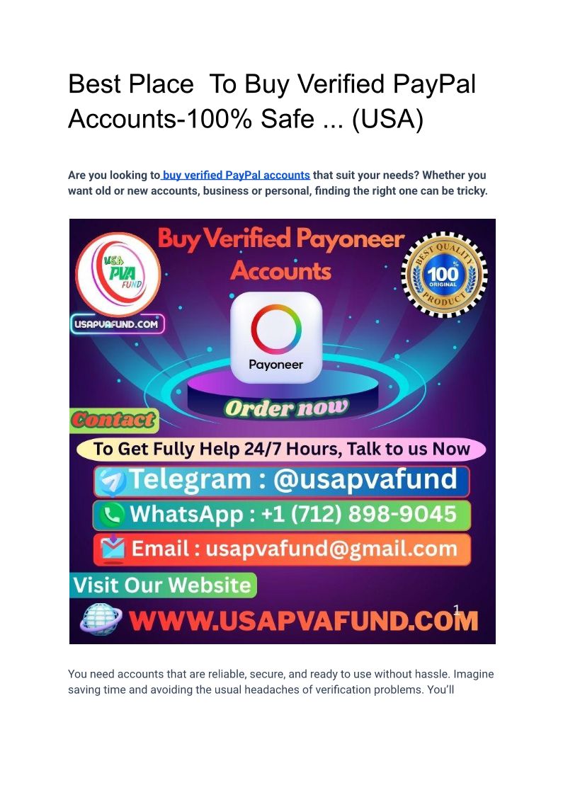 Best Place To Buy Verified PayPal Accounts-100% Safe ... (USA)