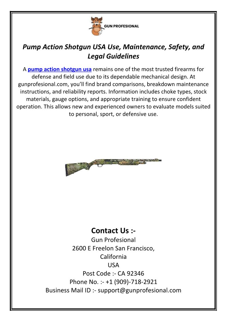 Pump Action Shotgun USA Use, Maintenance, Safety, and Legal Guidelines