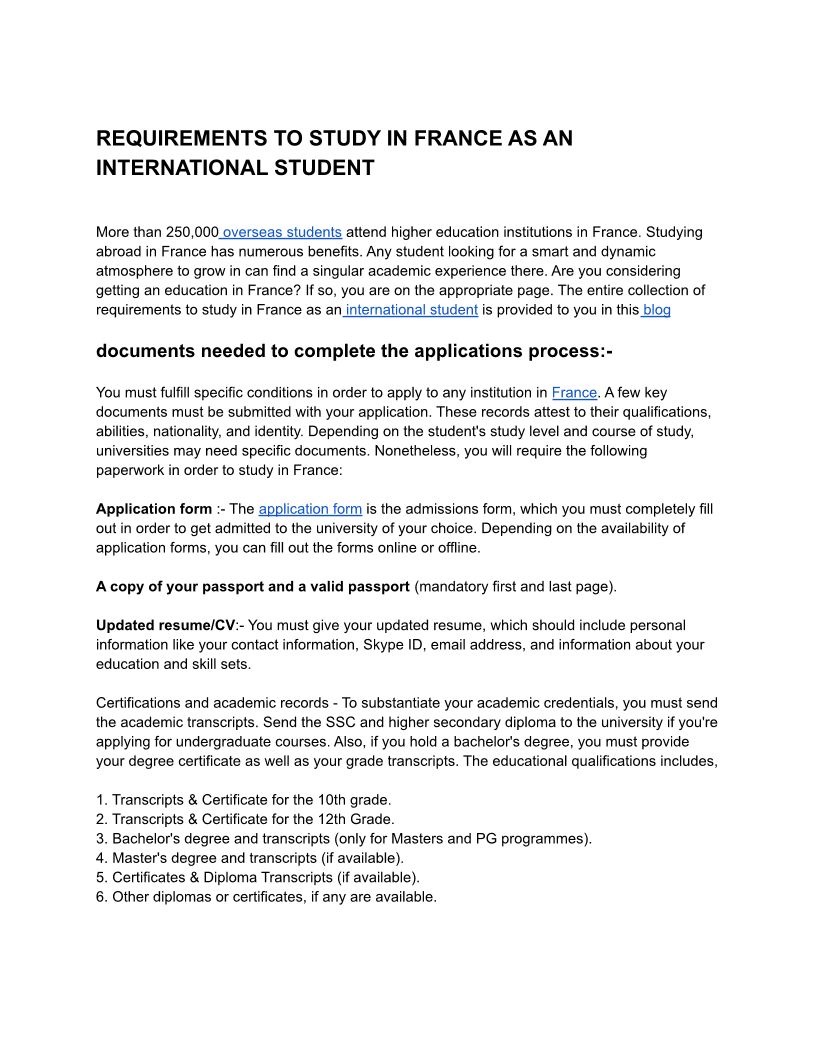 REQUIREMENTS TO STUDY IN FRANCE AS AN INTERNATIONAL STUDENT