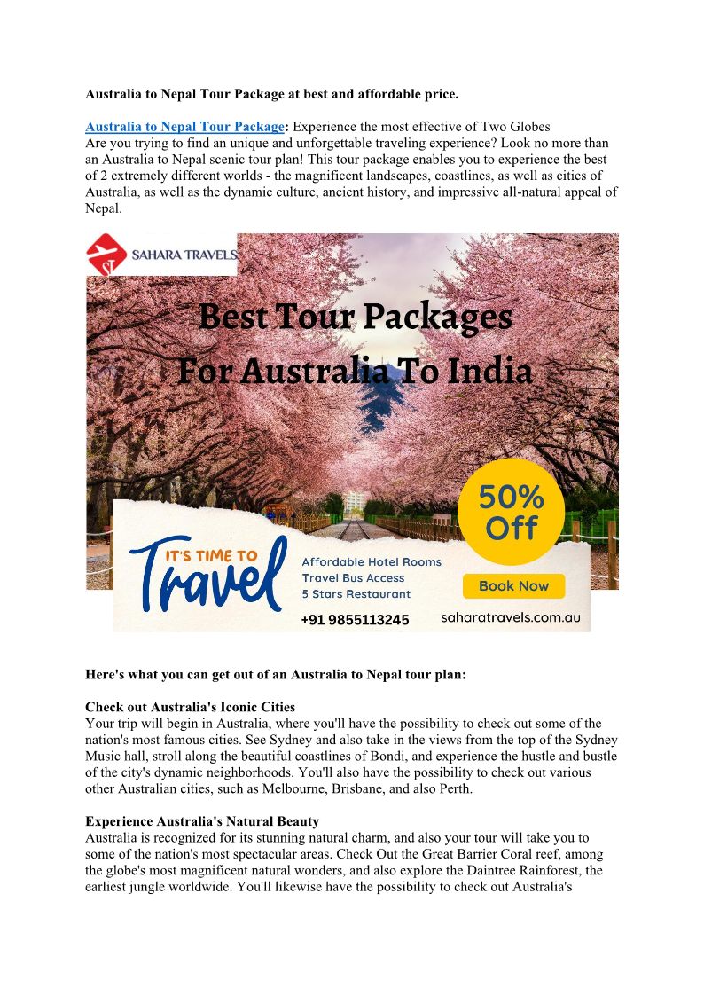 Australia to Nepal Tour Package at best and affordable price.