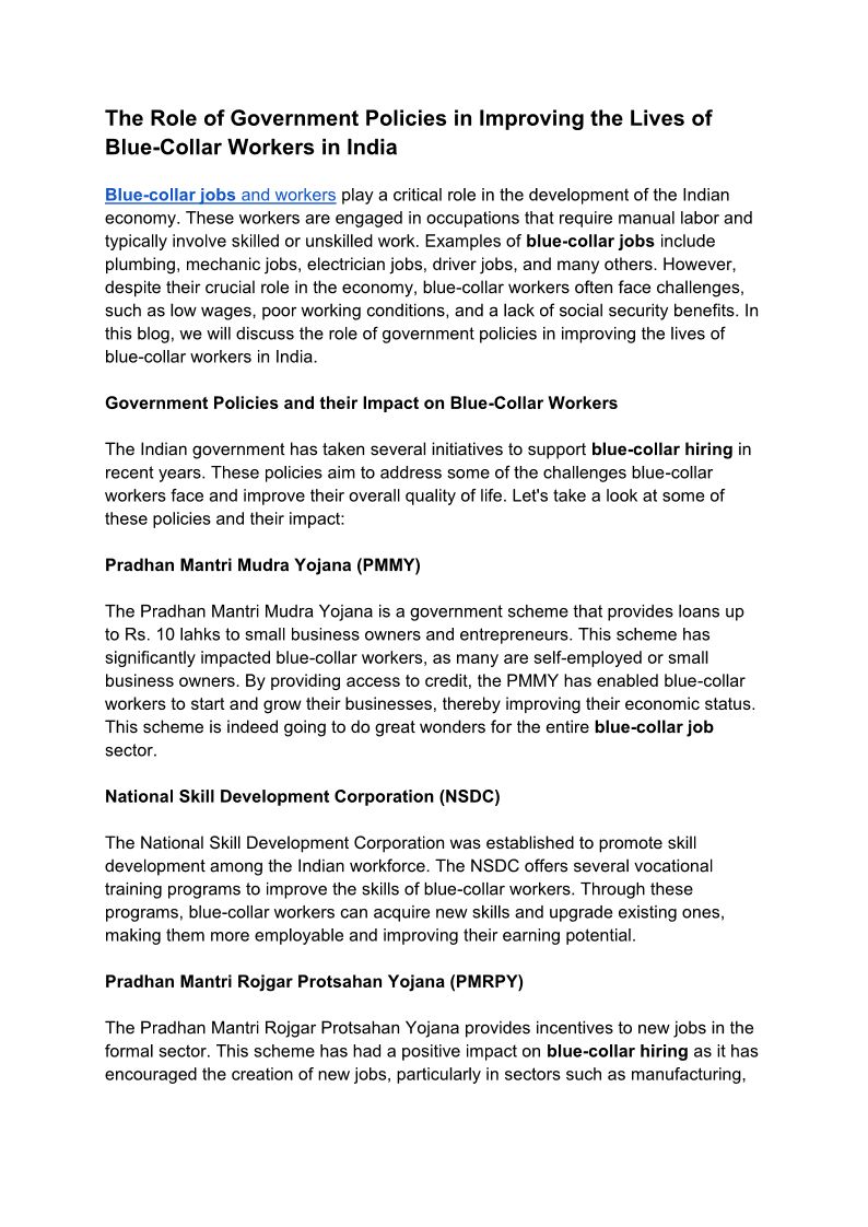 The Role of Government Policies in Improving the Lives of Blue-Collar Workers in India[1]