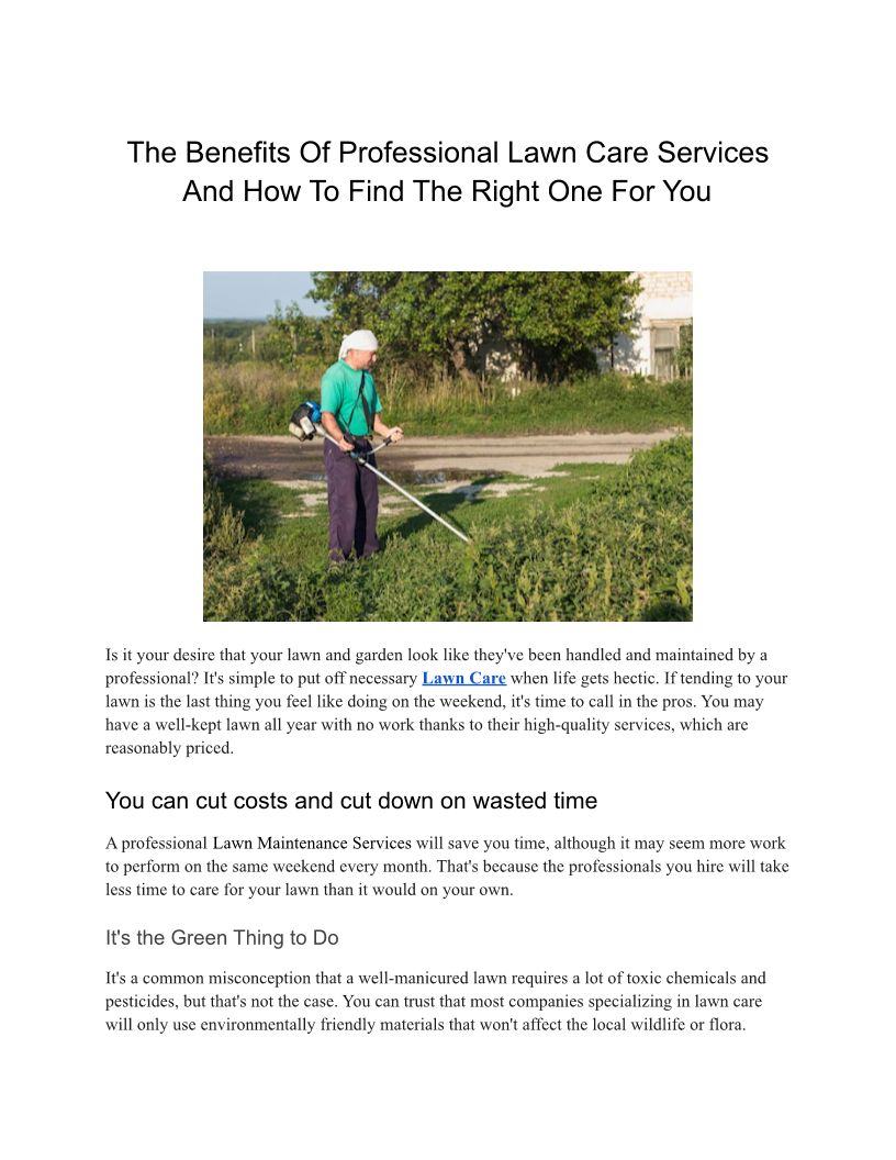 The Benefits Of Professional Lawn Care Services And How To Find The Right One For You