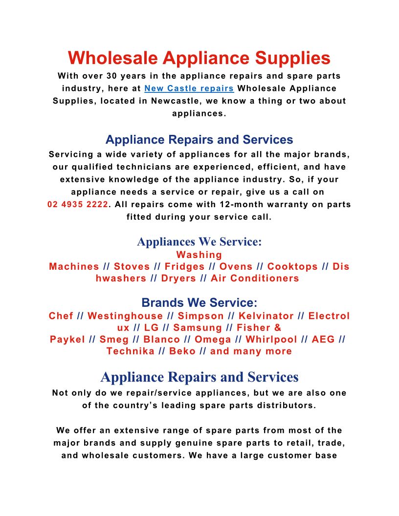 newcastlerepairs | Wholesale Appliance Supplies | Appliance Repairs and Services