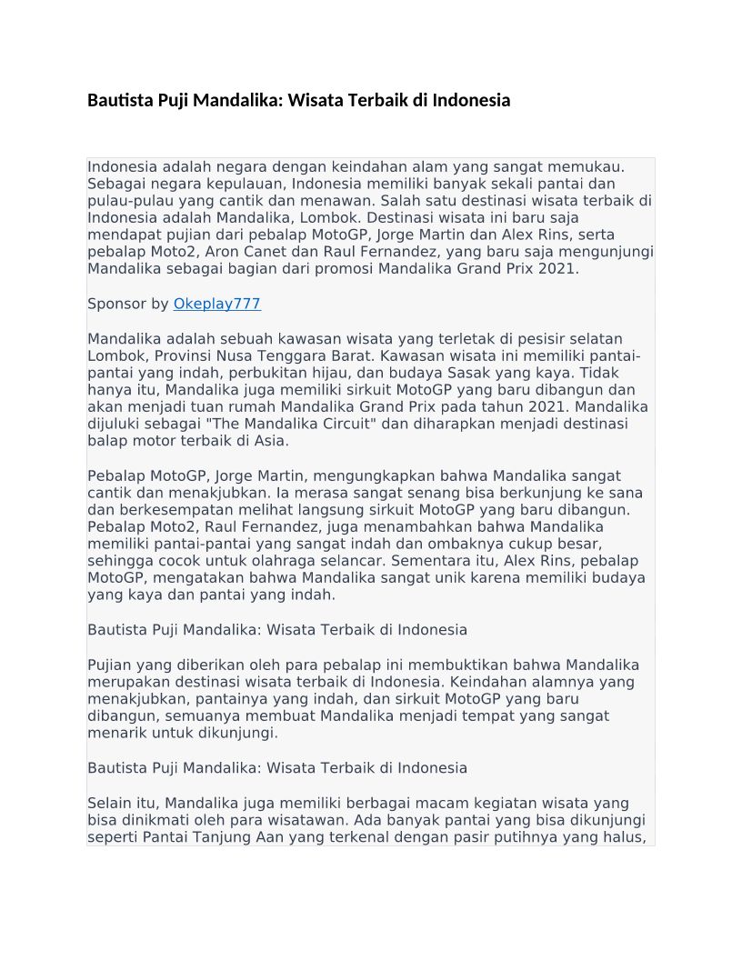 Bautista Puji Mandalika: Wisata Terbaik di Indonesia