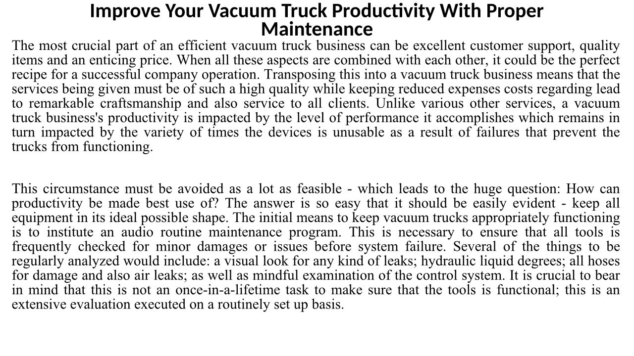 Improve Your Vacuum Truck Productivity With Proper Maintenance