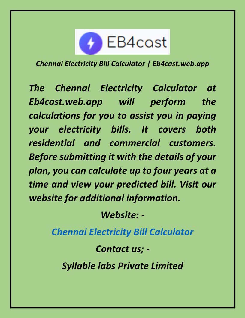 Chennai Electricity Bill Calculator Eb4cast.web.app