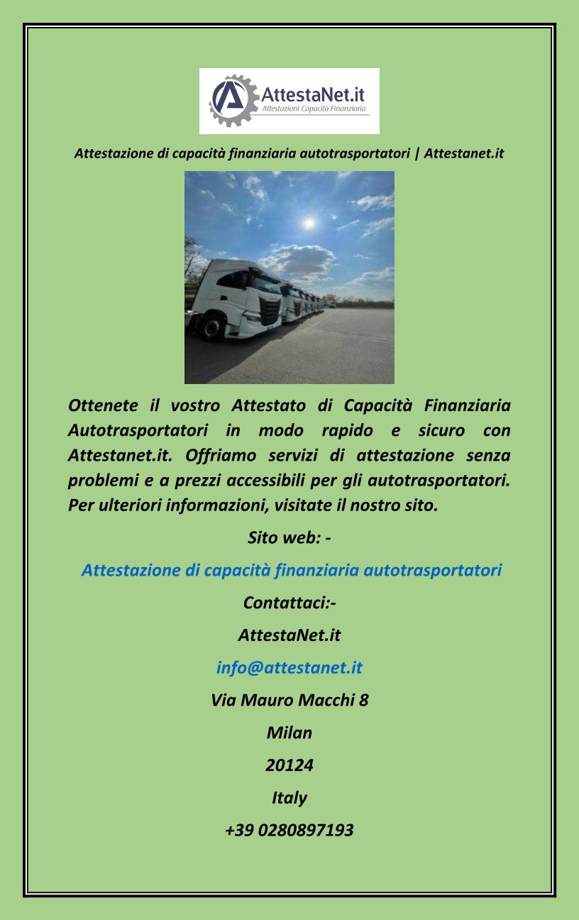 Attestazione di capacità finanziaria autotrasportatori Attestanet.it