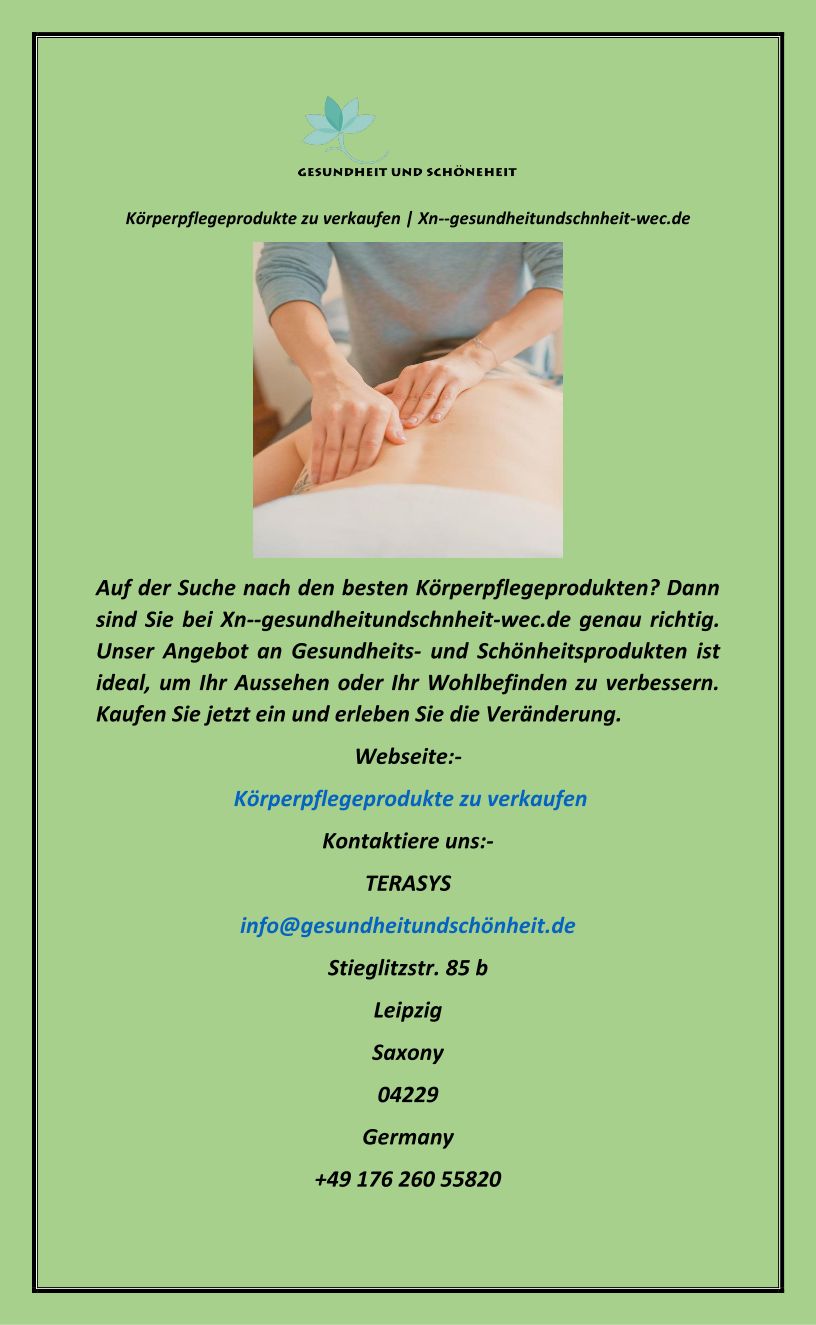 Körperpflegeprodukte zu verkaufen Xn--gesundheitundschnheit-wec.de