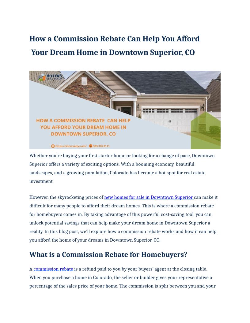 How a Commission Rebate Can Help You Afford Your Dream Home in Downtown Superior, CO