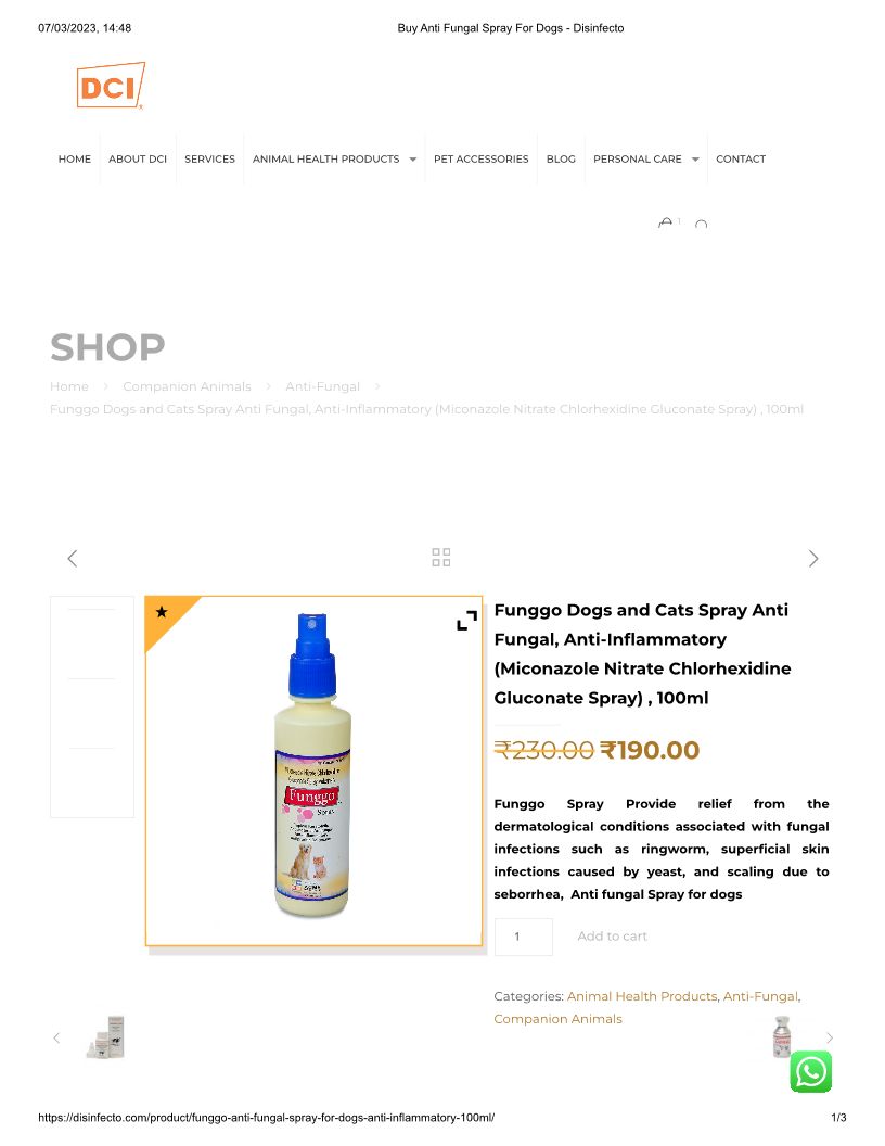Buy Anti Fungal Spray For Dogs - Disinfecto