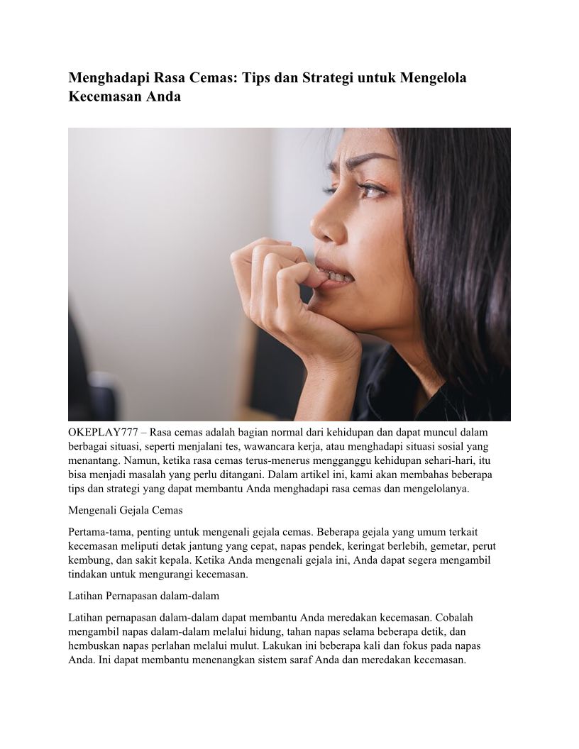 Menghadapi Rasa Cemas: Tips dan Strategi untuk Mengelola Kecemasan Anda