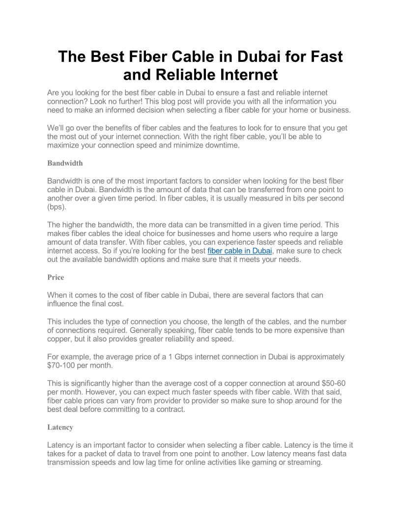 The Best Fiber Cable in Dubai for Fast and Reliable Internet
