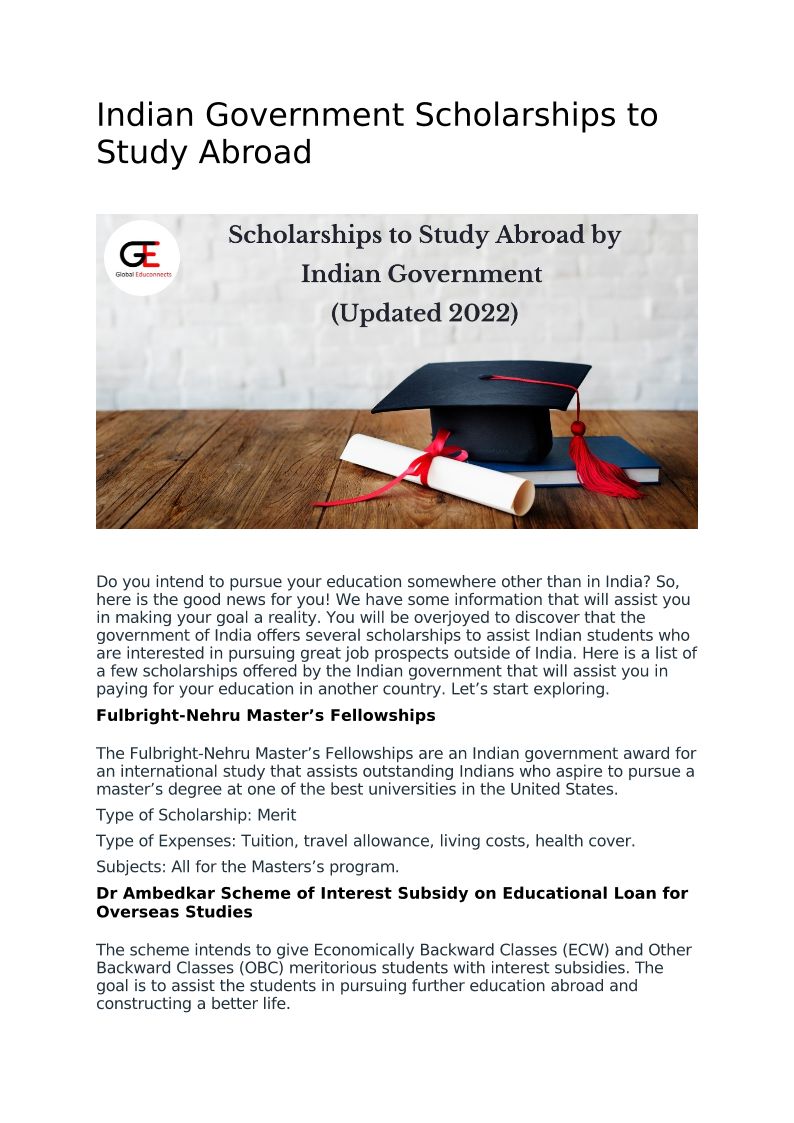 Indian Government Scholarships to Study Abroad