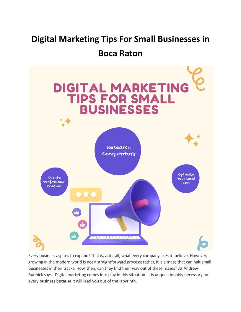 Digital Marketing Tips For Small Entrepreneur in Boca Raton