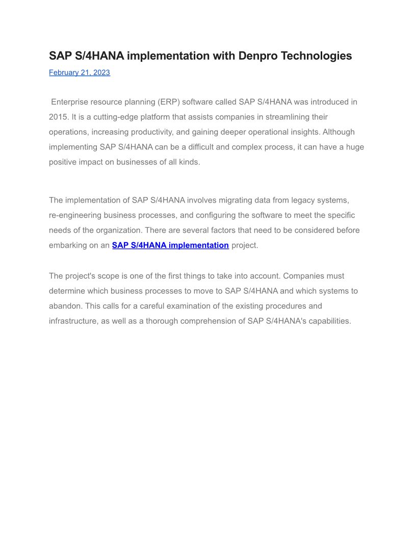 SAP S_4HANA implementation with Denpro Technologies