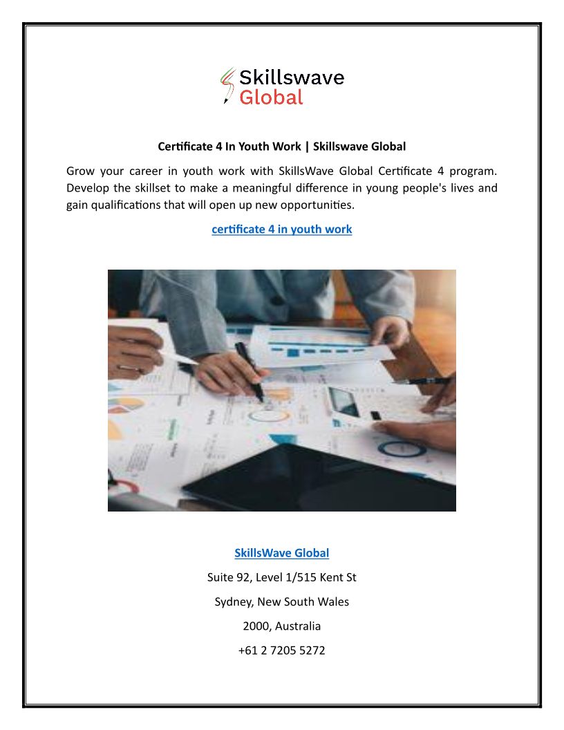 Certificate 4 In Youth Work | Skillswave Global