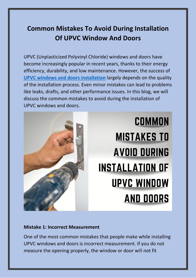 Common Mistakes To Avoid During Installation Of UPVC Window And Doors