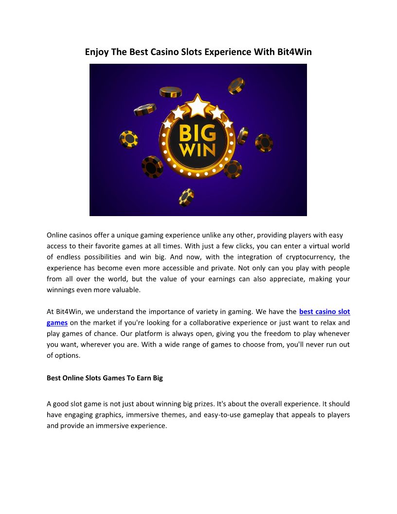 Enjoy The Best Casino Slots Experience With Bit4Win
