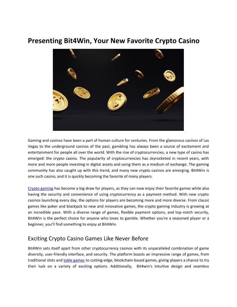Presenting Bit4Win, Your New Favorite Crypto Casino
