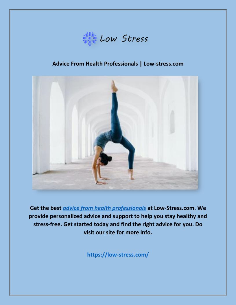 Advice From Health Professionals | Low-stress.com