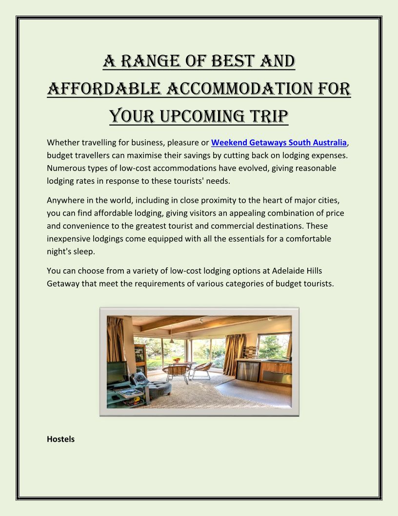 A Range of Best and Affordable Accommodation For Your Upcoming Trip