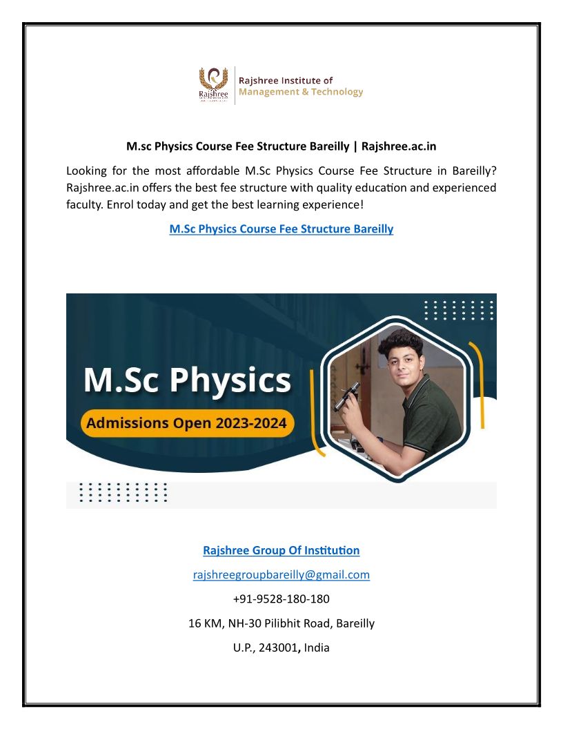 M.sc Physics Course Fee Structure Bareilly | Rajshree.ac.in