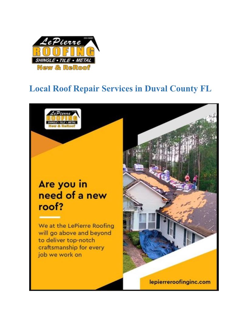 Local Roof Repair Services in Duval County FL - Lepierre roofing