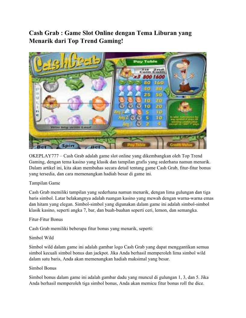 Cash Grab : Game Slot Online dengan Tema Liburan yang Menarik dari Top Trend Gaming!