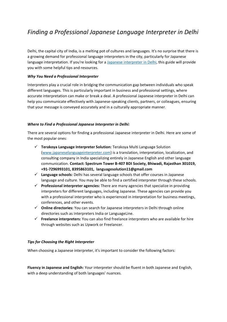 Finding a Professional Japanese Language Interpreter in Delhi