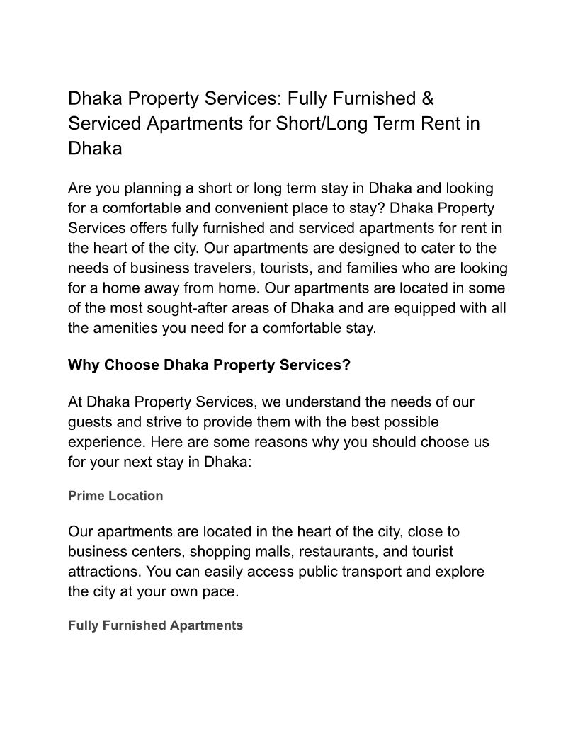 Fully Furnished & serviced apartment for short/long term rent at Dhaka