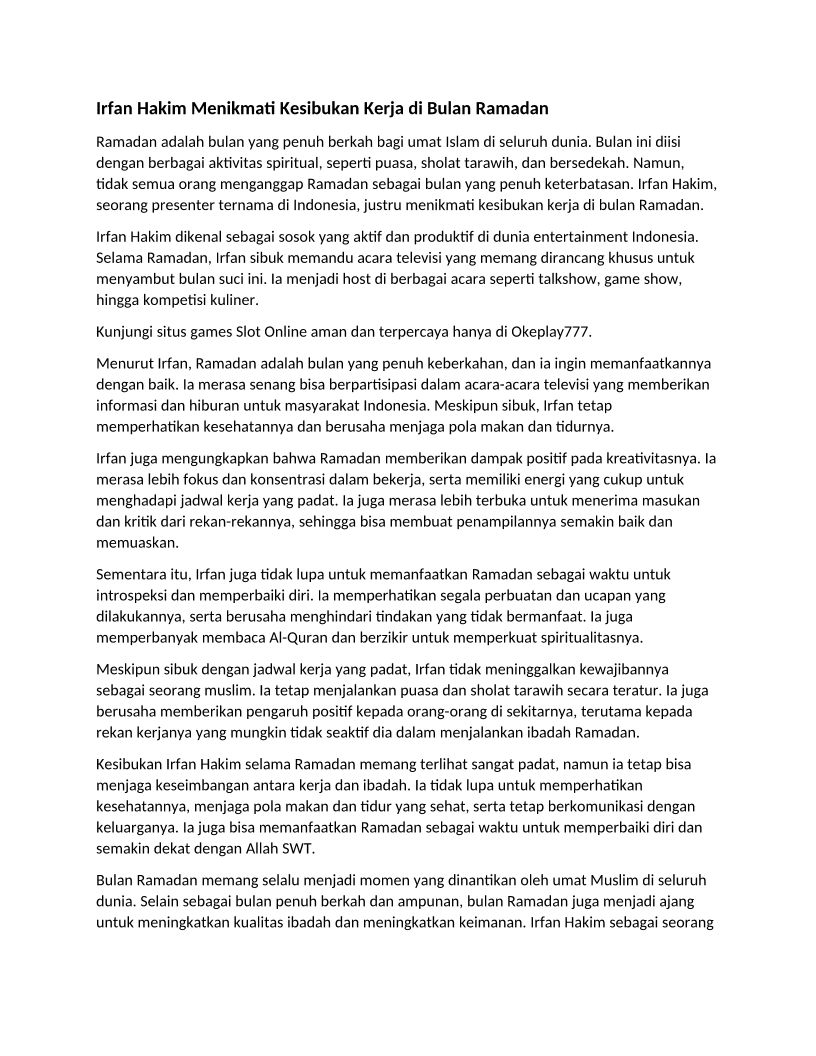 Irfan Hakim Menikmati Kesibukan Kerja di Bulan Ramadan
