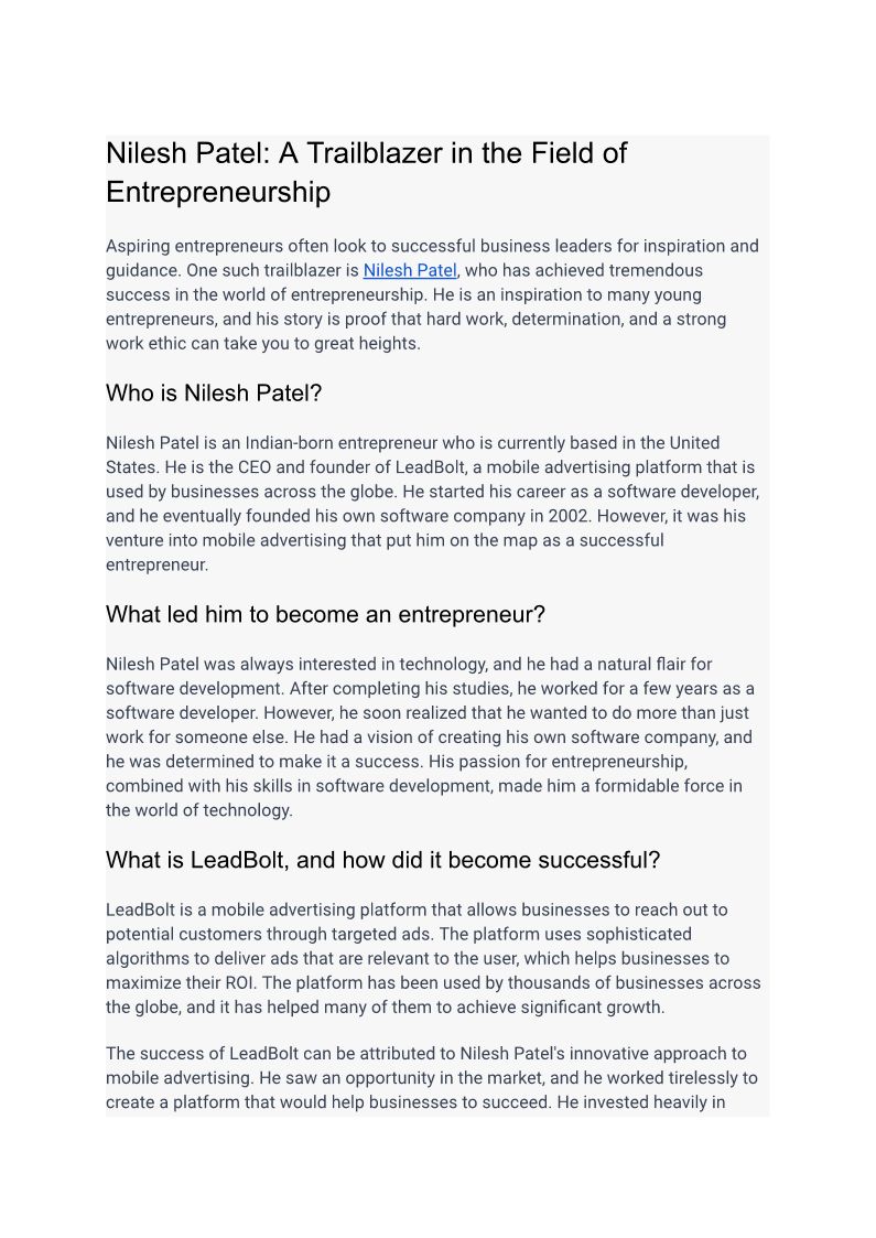 Nilesh Patel_ A Trailblazer in the Field of Entrepreneurship