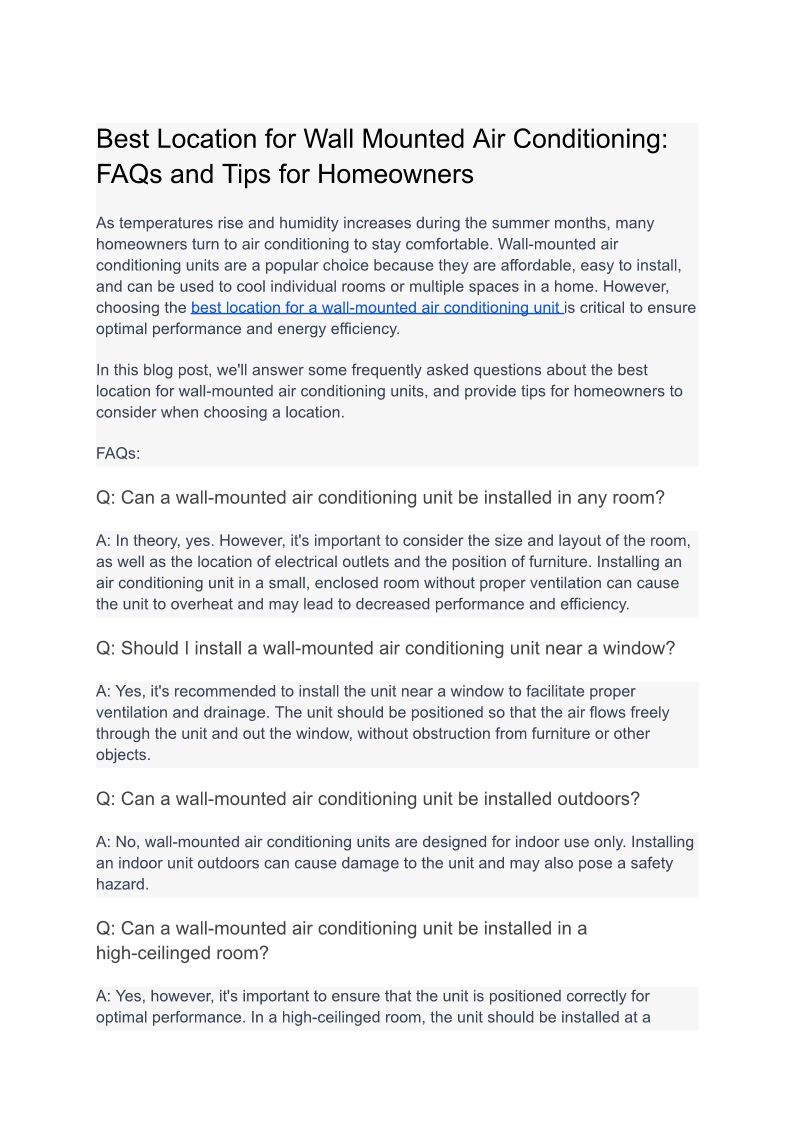 Best Location for Wall Mounted Air Conditioning_ FAQs and Tips for Homeowners