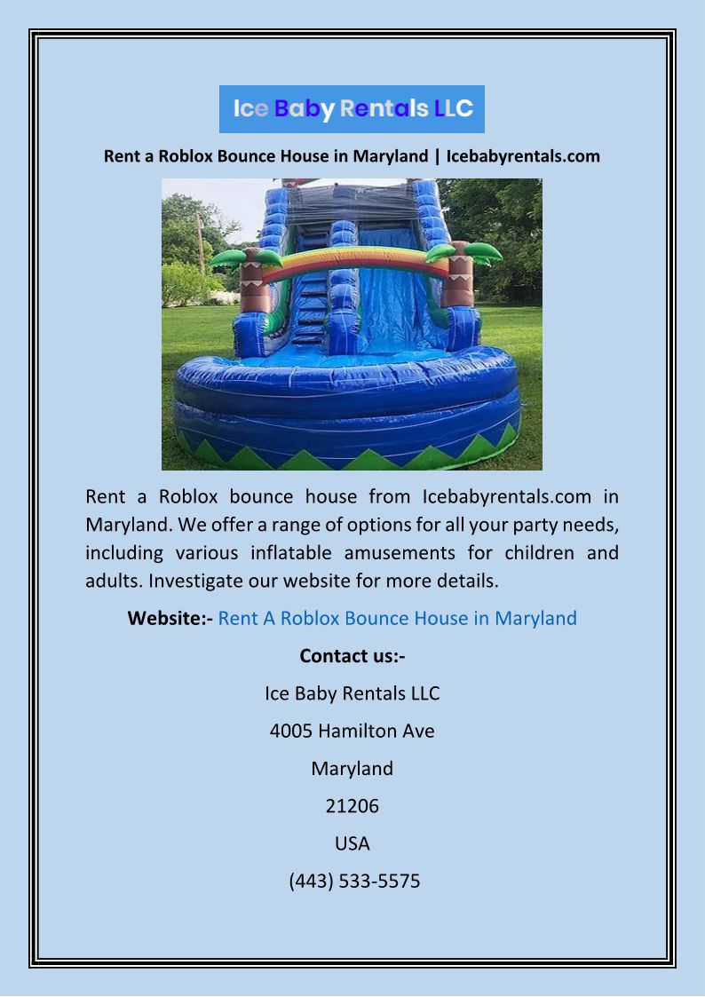 Rent a Roblox Bounce House in Maryland Icebabyrentals