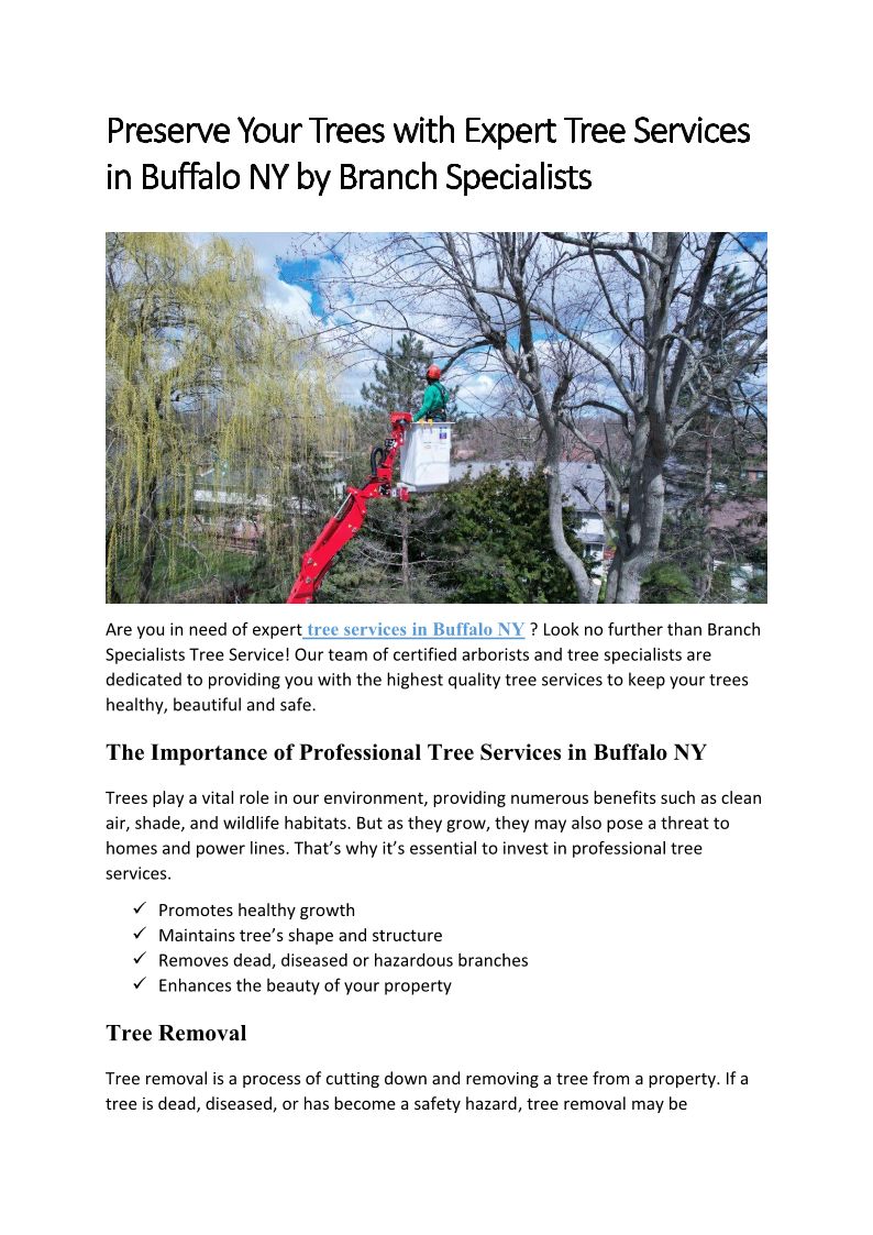 Preserve Your Trees with Expert Tree Services in Buffalo NY by Branch Specialists