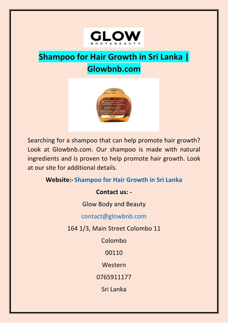Shampoo for Hair Growth in Sri Lanka | Glowbnb.com