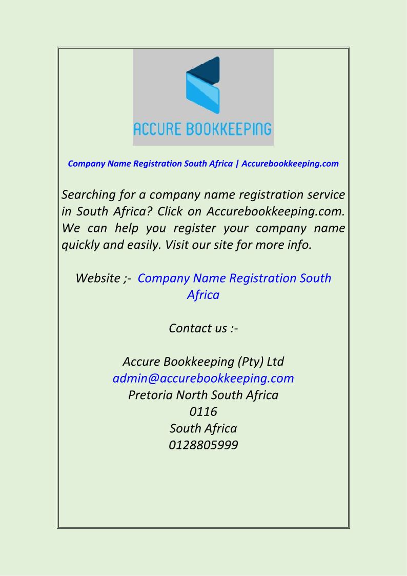 Company Name Registration South Africa Accurebookkeeping.com