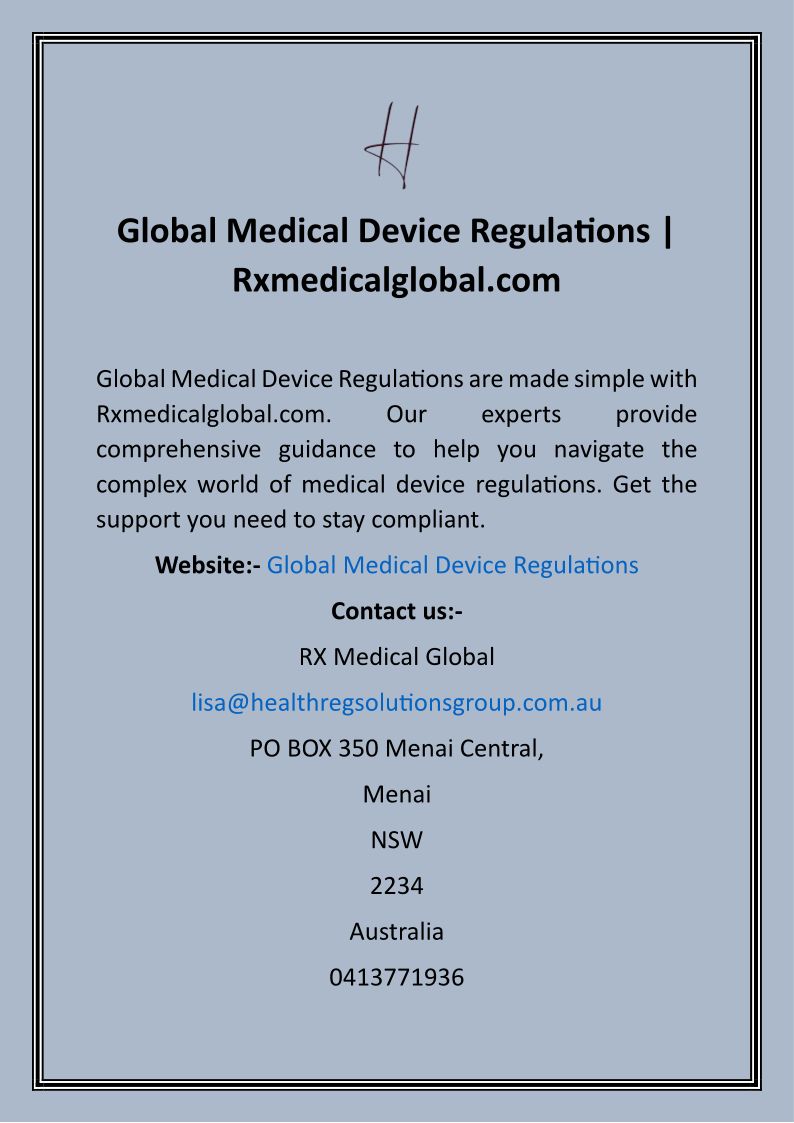 Global Medical Device Regulations Rxmedicalglobal