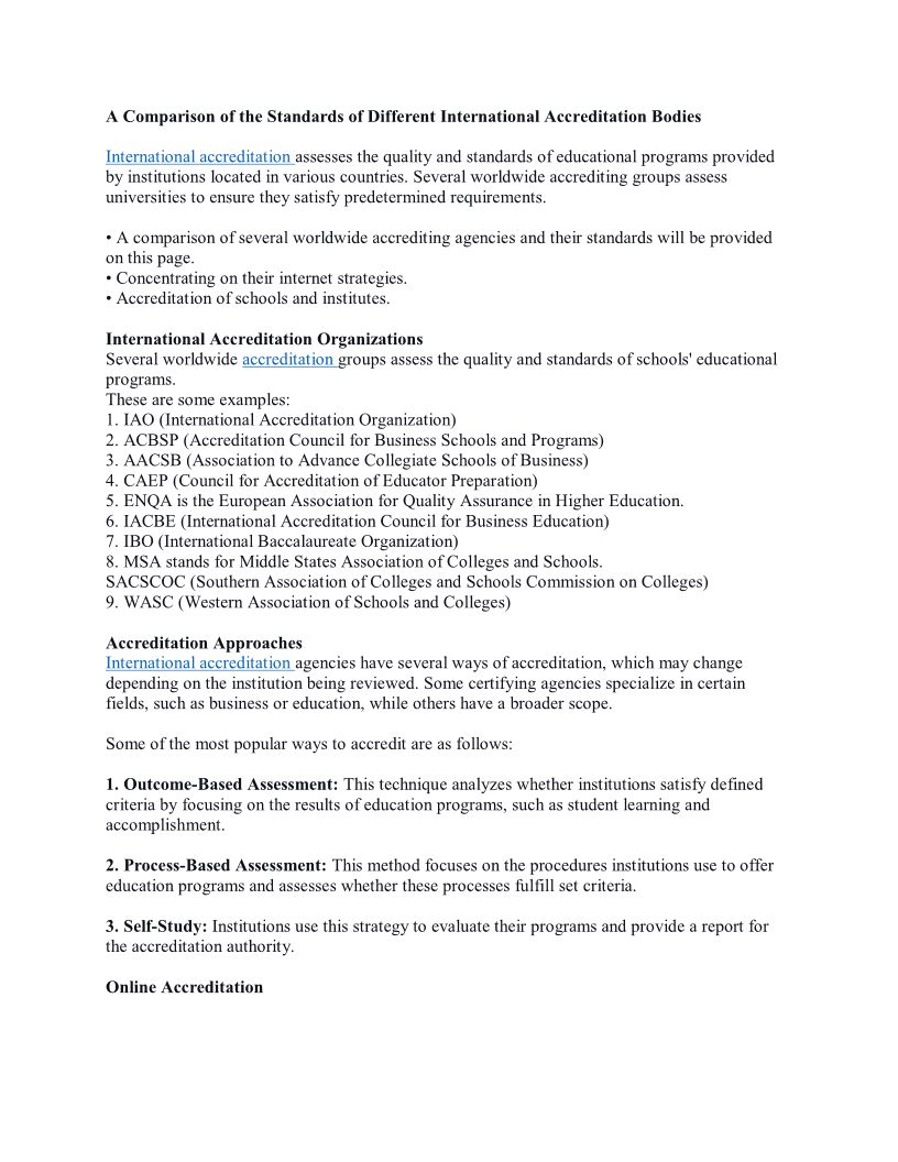A Comparison of the Standards of Different International Accreditation Bodies