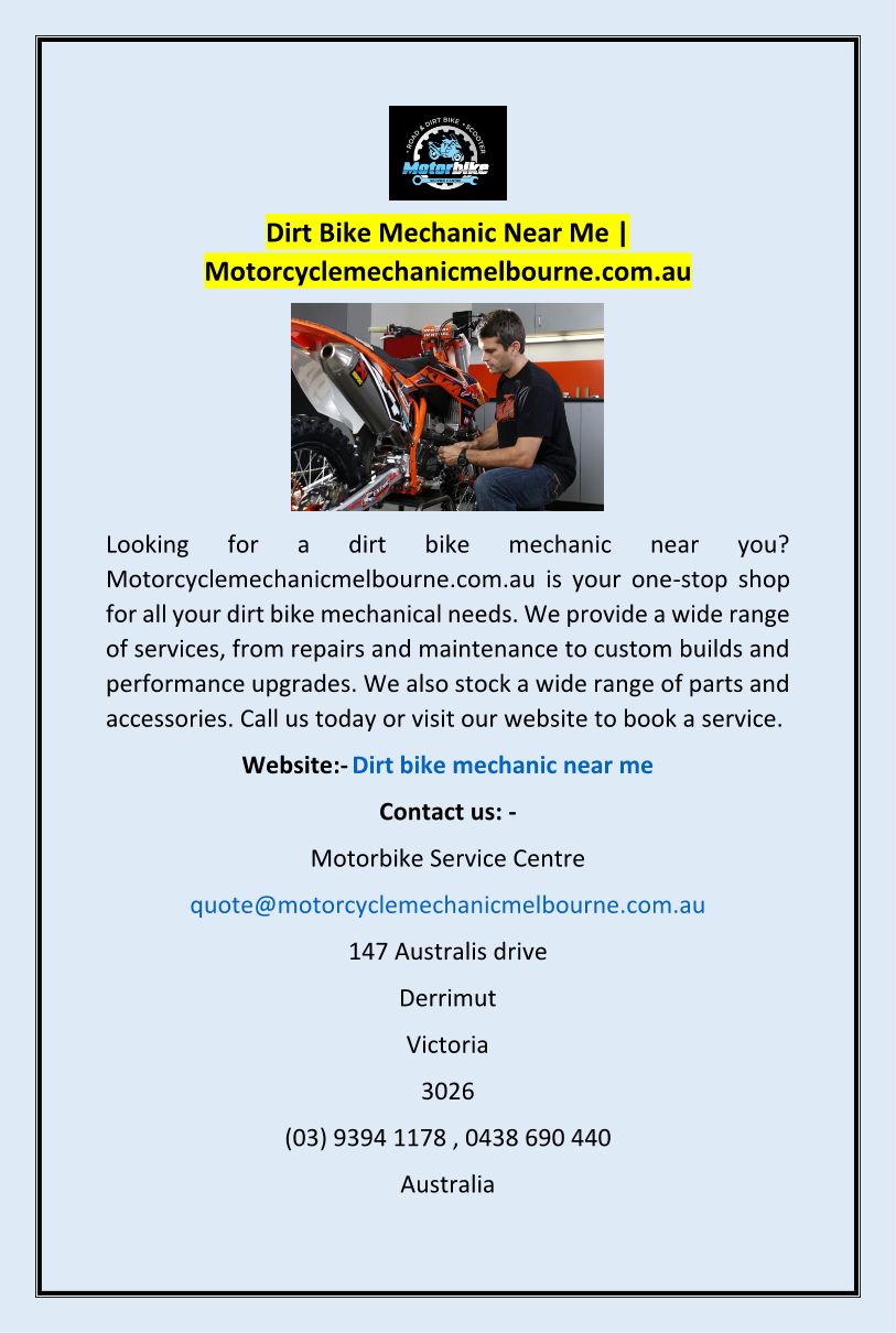Dirt Bike Mechanic Near Me | Motorcyclemechanicmelbourne.com.au