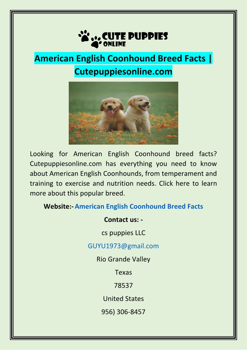 American English Coonhound Breed Facts | Cutepuppiesonline.com