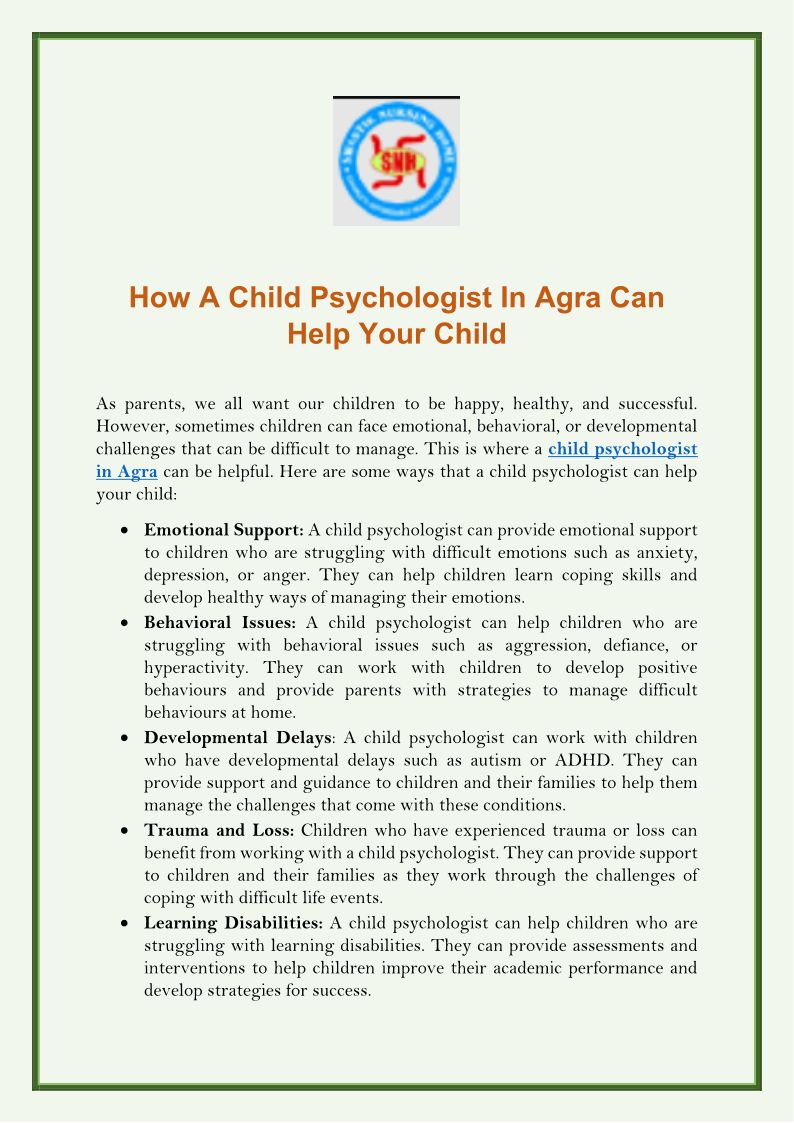 How A Child Psychologist In Agra Can Help Your Child