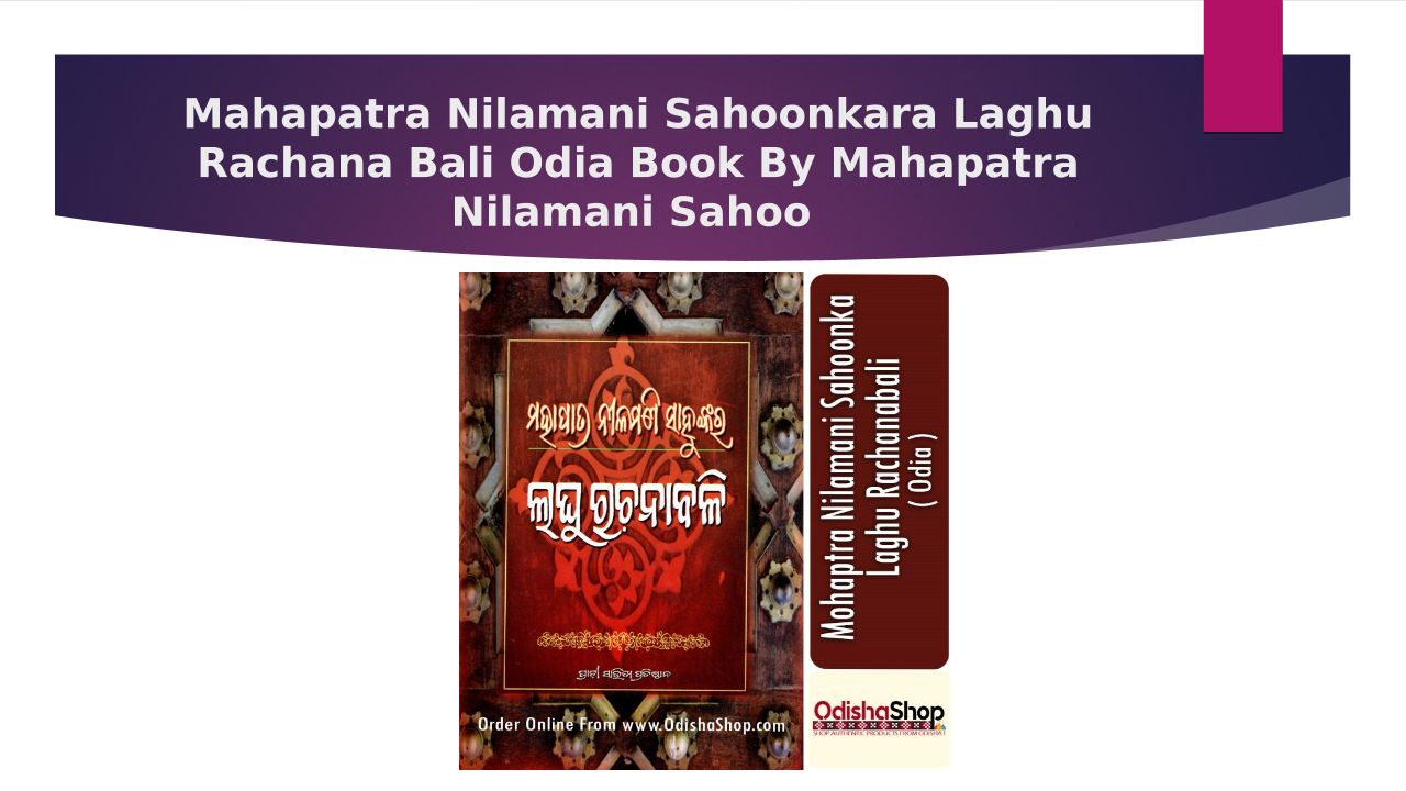Mahapatra Nilamani Sahoonkara Laghu Rachana Bali Odia Book