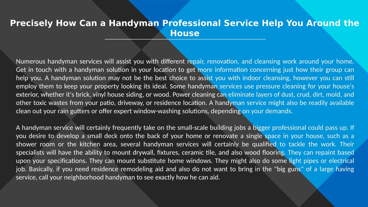 Precisely How Can a Handyman Professional Service Help You Around the House