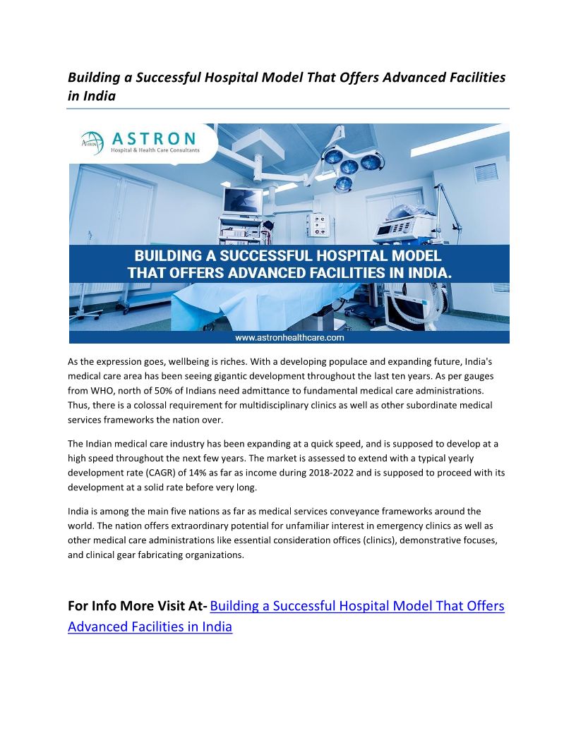 Building a Successful Hospital Model That Offers Advanced Facilities in India